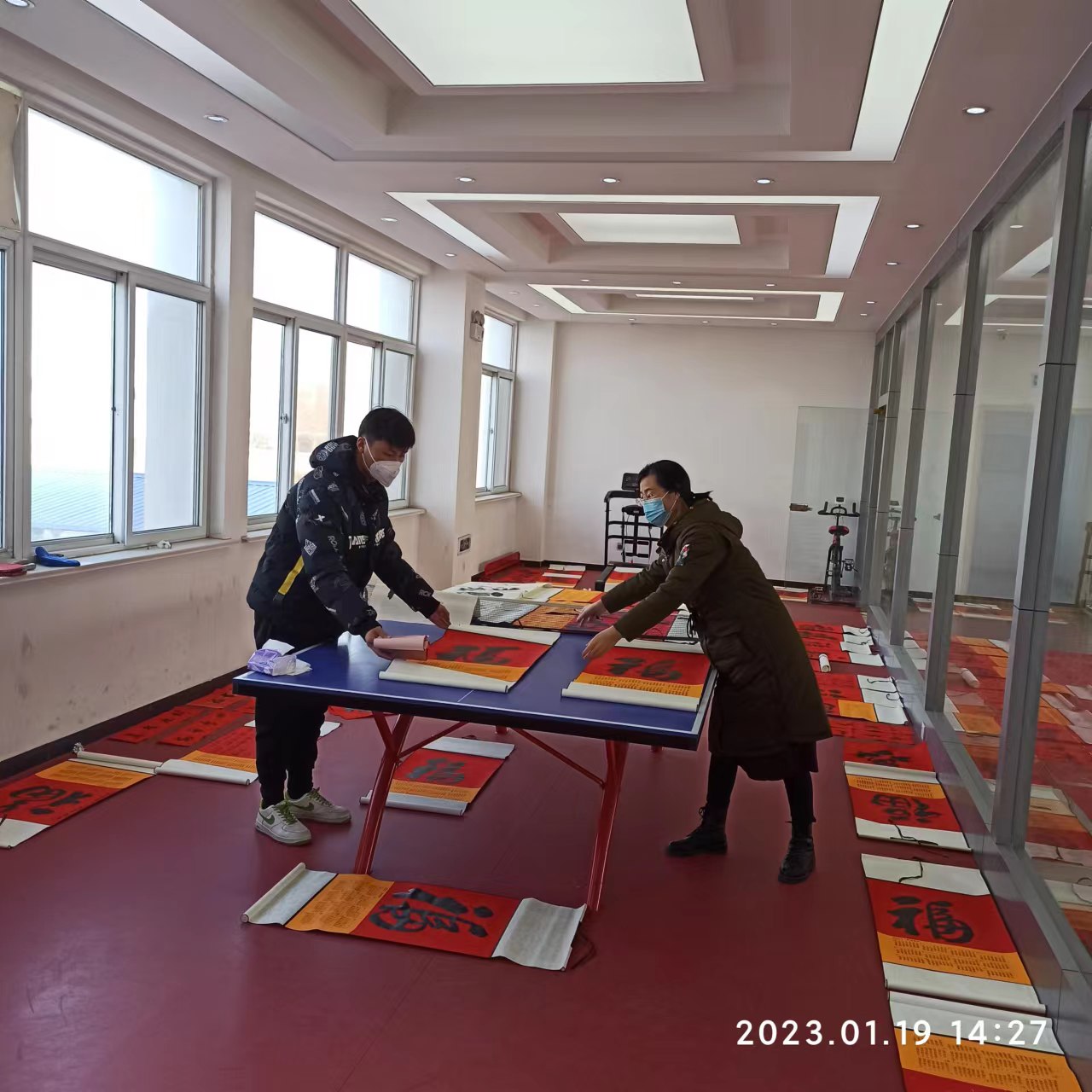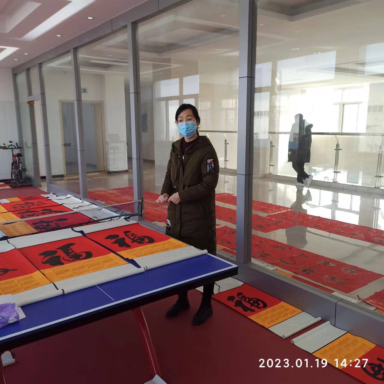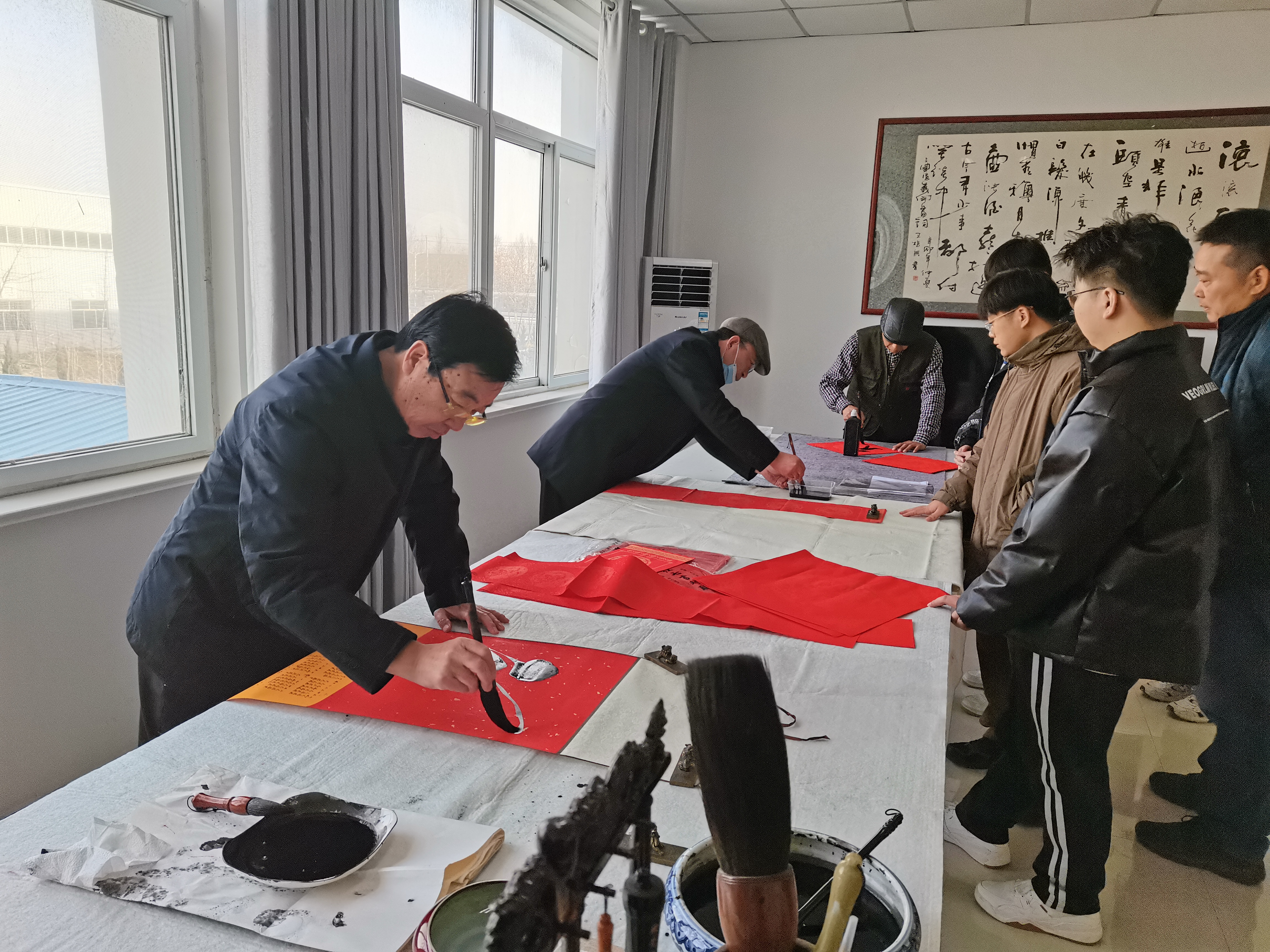 23年1月19日,公司邀请市书协数个会员到公司书写春联,并对公司书法爱好者进行了交流指导活动。活动中公司提前准备了春联卷轴、对联红纸、笔墨等材料。书法家在现场书写“福”字等挂件120余件,对联80副。各种对联等作品,由公司统一发放到各个部门,整个活动井然有序,气氛和谐欢快。